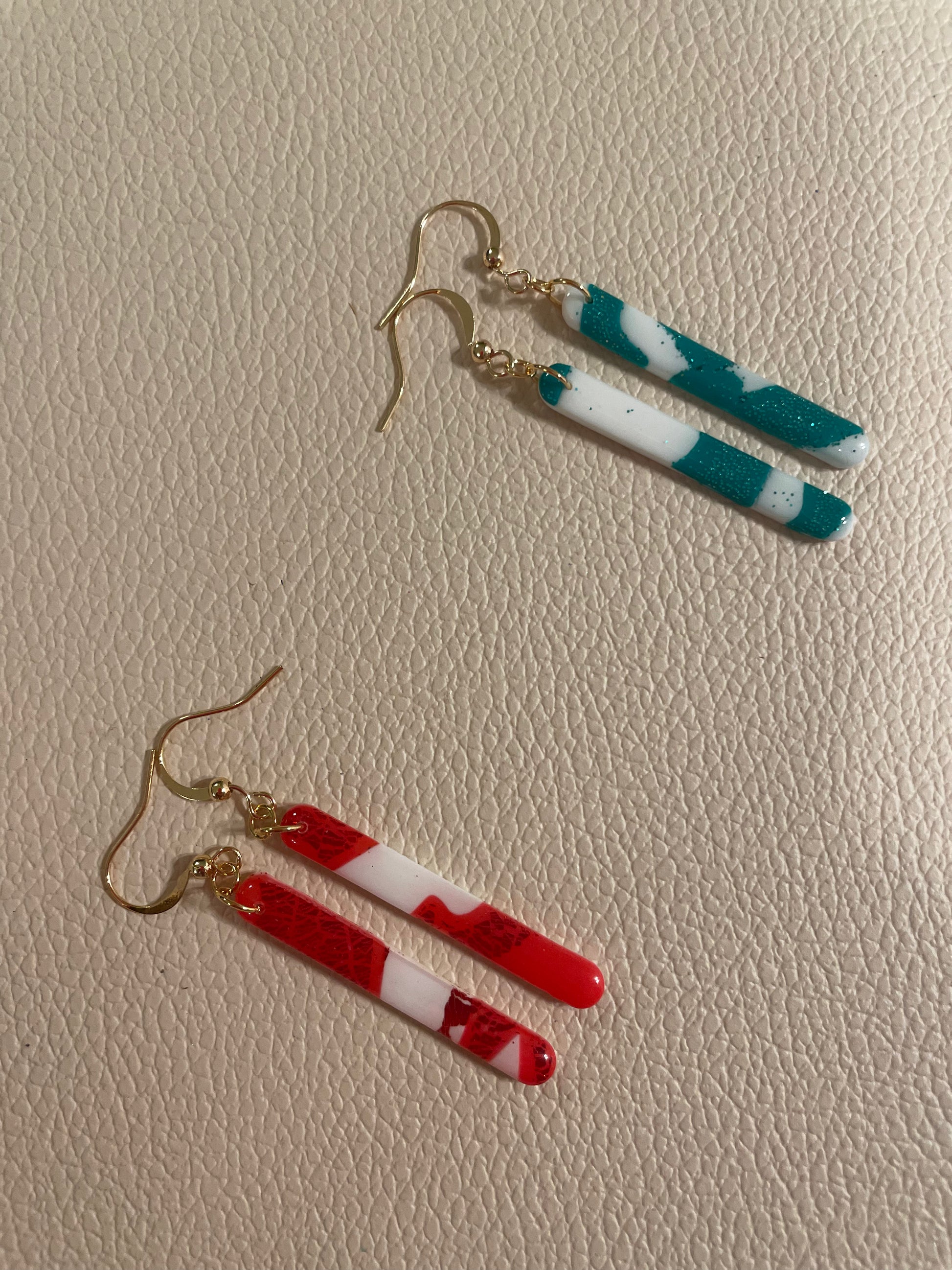 - Boucles d’oreilles faites main en argile polymère.