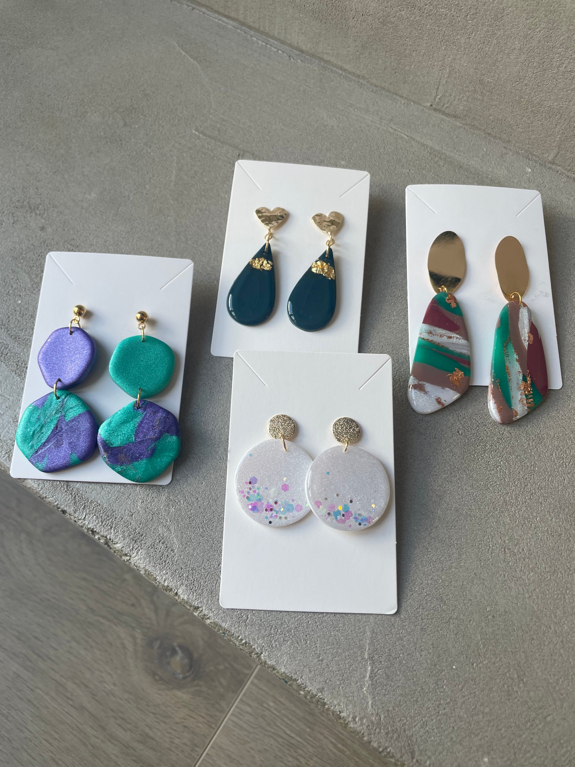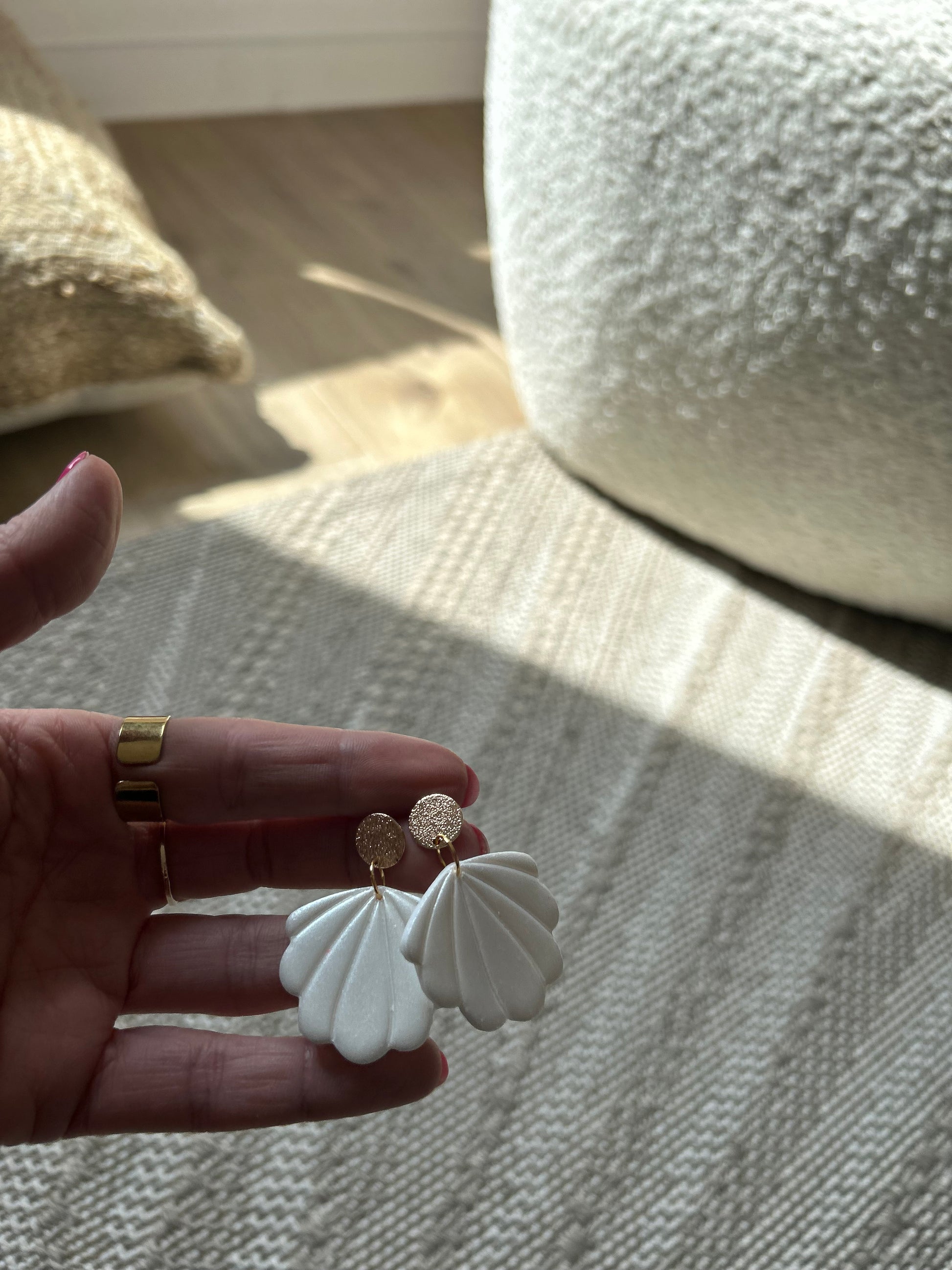 Les boucles d’oreilles en argile sont imaginées et entièrement réalisées et assemblées à la main depuis mon atelier en France.